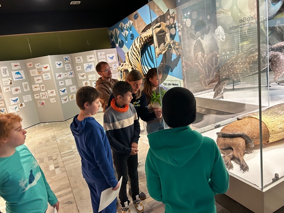 Einen besonderen Moment erlebte die Klasse im Korallenriff-Bereich des Museums. Dort entdeckten sie die Schäfchenschnecke, das Klassentier der MS 1. Stolz teilten die Kinder ihr Wissen über die kleine Meeresschnecke mit den Museumsexperten und erfuhren noch mehr über ihren exotischen Liebling.